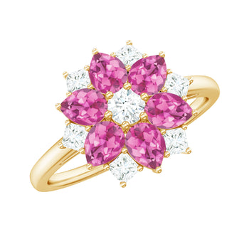 Sold out - Natural Pink Tourmaline Flower Ring with Moissanite+sp.priceRaw ? 'price price--on-sale' : 'price'">