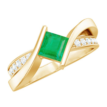 Sold out - Princess Cut Emerald Engagement Ring with Diamond Split Shank+sp.priceRaw ? 'price price--on-sale' : 'price'">