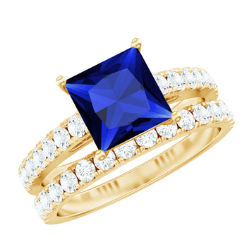 - Princess Cut Lab Grown Blue Sapphire Solitaire Ring Set with Moissanite+sp.priceRaw ? 'price price--on-sale' : 'price'">