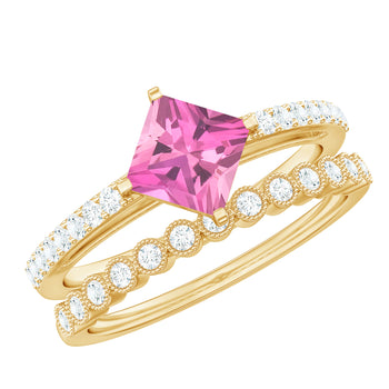 - Princess Cut Pink Tourmaline Wedding Ring Set with Moissanite(3)+sp.priceRaw ? 'price price--on-sale' : 'price'">