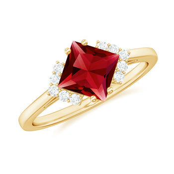 Sold out - 1.75 CT Princess Cut Lab Grown Ruby Engagement Ring with Diamond+sp.priceRaw ? 'price price--on-sale' : 'price'">