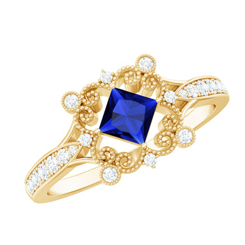 Sold out - Antique Style Princess Cut Created Blue Sapphire and Diamond Engagement Ring+sp.priceRaw ? 'price price--on-sale' : 'price'">