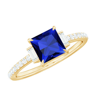 Sold out - 2 CT Princess Cut Created Blue Sapphire Promise Ring with Diamond Side Stones+sp.priceRaw ? 'price price--on-sale' : 'price'">