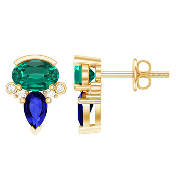 - Lab Grown Emerald and Blue Sapphire Bridal Stud Earring with Certificate+sp.priceRaw ? 'price price--on-sale' : 'price'">