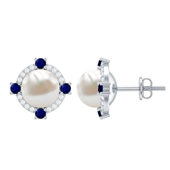 Sold out - Certified 7 MM Cultured Pearl Halo Stud Earrings+sp.priceRaw ? 'price price--on-sale' : 'price'">