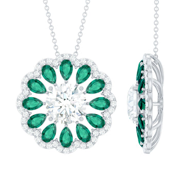Sold out - Certified 3 Carat Moissanite Flower Bridal Necklace With Lab Created Emerald+sp.priceRaw ? 'price price--on-sale' : 'price'">
