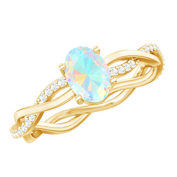 Sold out - Natural 6X8mm Opalescent Oval Engagement Ring with Diamond Braided Shank+sp.priceRaw ? 'price price--on-sale' : 'price'">