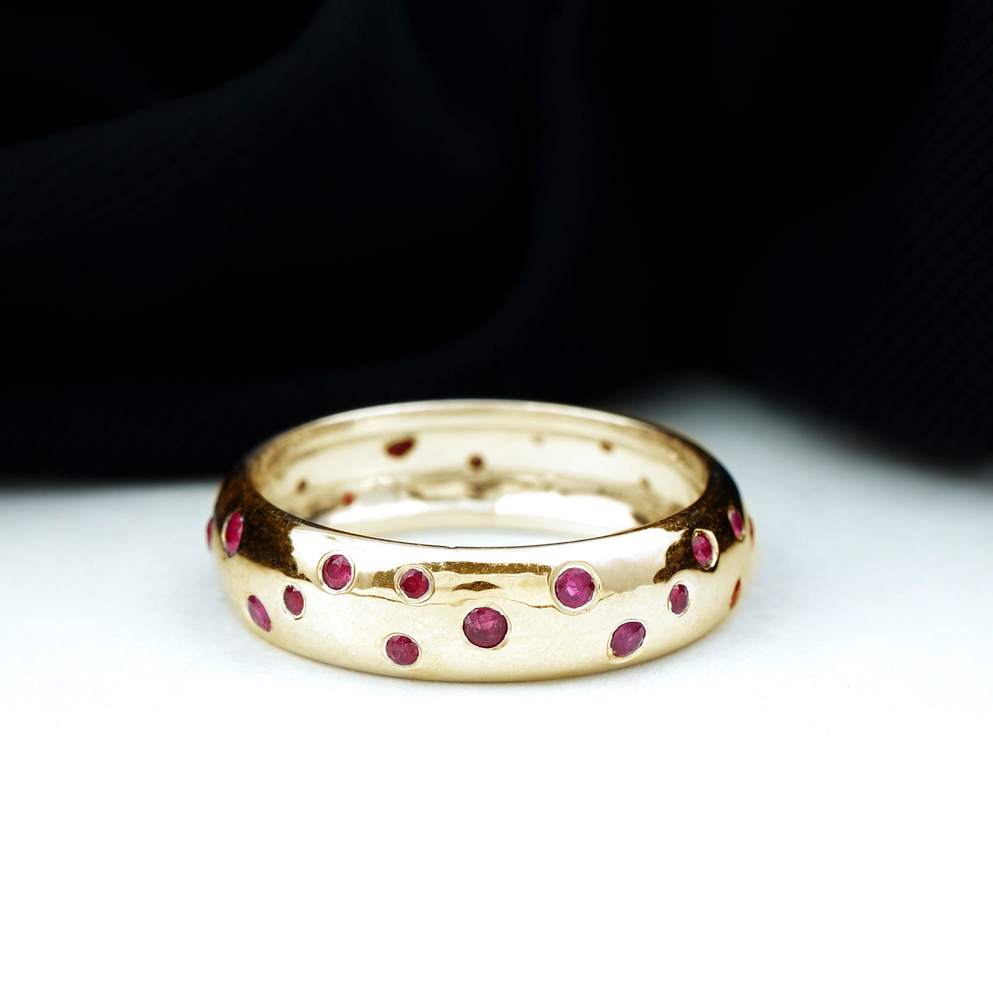 Eternity Rings: - Offering timeless elegance and beauty the ruby eternity rings are crafted with a stunning ruby gemstone, and precious white gold or yellow gold metal. Each half-eternity and full-eternity ring is carefully designed to stay forever while keeping the shine of the ruby stone.