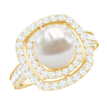 Sold out - Amazing Freshwater Pearl Solitaire Engagement Ring and Moissanite Double Halo(5)+sp.priceRaw ? 'price price--on-sale' : 'price'">