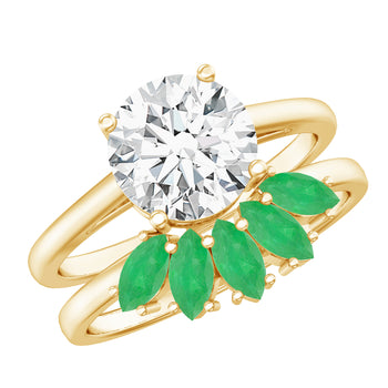 Sold out - Certified 8 MM Lab Grown Diamond Engagement Ring With Emerald Wedding Band+sp.priceRaw ? 'price price--on-sale' : 'price'">