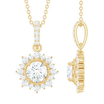Sold out - Round Moissanite Halo Pendant with Beaded Detailing+sp.priceRaw ? 'price price--on-sale' : 'price'">
