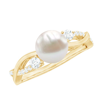 - Natural Freshwater Pearl and Diamond Solitaire Crossover Ring(4)+sp.priceRaw ? 'price price--on-sale' : 'price'">