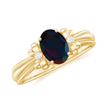 Sold out - 1 CT Oval Black Opal Solitaire Floral Ring with Diamond Accent+sp.priceRaw ? 'price price--on-sale' : 'price'">