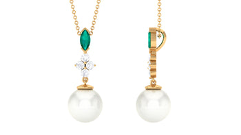Sold out - Real Pearl Dangle Necklace with Emerald and Moissanite+sp.priceRaw ? 'price price--on-sale' : 'price'">