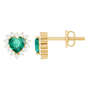Sold out - Heart Shaped Lab Created Emerald and Diamond Halo Stud Earrings+sp.priceRaw ? 'price price--on-sale' : 'price'">