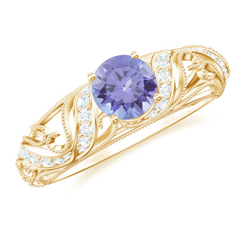 Tanzanite Vintage Inspired Engagement Rings: - Vintage Tanzanite diamond engagement ring styles are often inspired by multiple eras, merging into something unique. The antique tanzanite engagement ring is a modern ring crafted in yellow gold or white gold to give an antique appeal. Each ring showcases its beauty, and the intricate design makes the perfect vintage engagement ring.