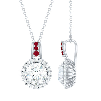 - Certified Moissanite Ruby Halo Pendant Necklace with Silver Chain+sp.priceRaw ? 'price price--on-sale' : 'price'">