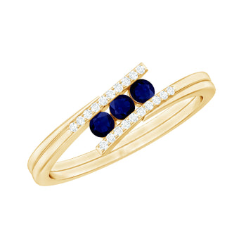 Sold out - 1/2 CT Three Stone Blue Sapphire Bypass Engagement Ring with Diamond(3)+sp.priceRaw ? 'price price--on-sale' : 'price'">