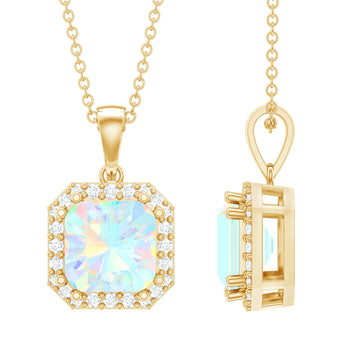 Sold out - Asscher Cut Ethiopian Opal Pendant Necklace with Diamond Halo+sp.priceRaw ? 'price price--on-sale' : 'price'">