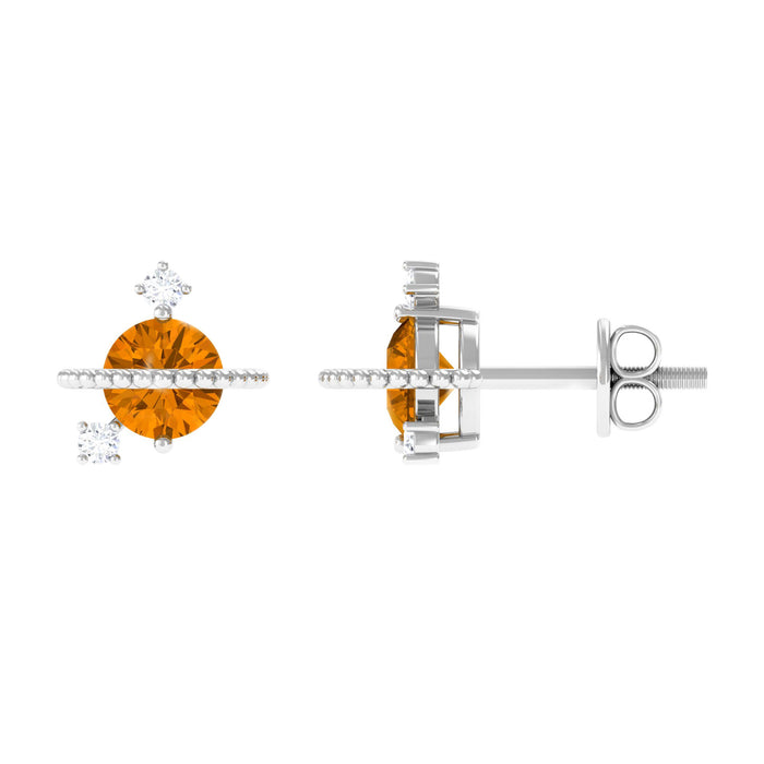 Mark the cherished moments with a gift that speaks volumes. These enchanting Celestial Stud Earrings are a tribute to your love, adorned with the radiant Round Shape Citrine, gracefully cradled within a secure Prong Setting. These earrings are not just a token of affection but also a symbol of the golden memories you share, making them the perfect expression of your love and devotion.