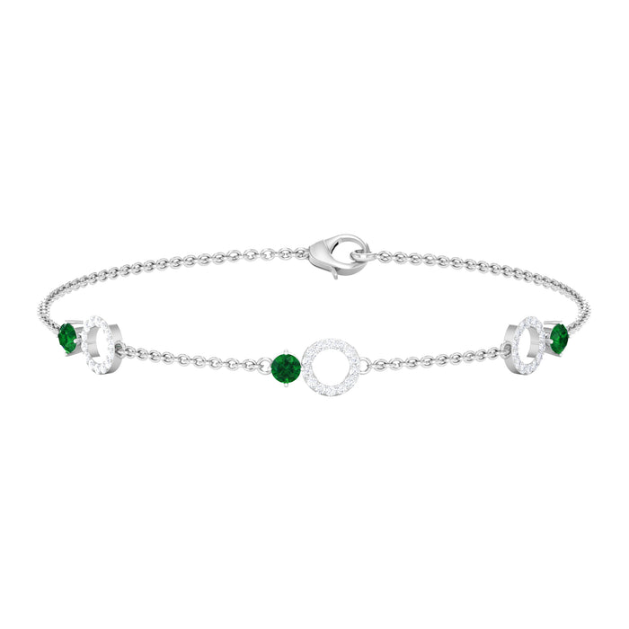 Dazzling emerald and Diamond chain bracelet with lobster claw clasp, perfect for flaunting your style and adding a touch of glamour to any party.
