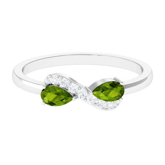 Show your infinite love to her by presenting this alluring Infinity Promise Ring embellished with Pear Cut Peridot in Prong Setting with Round Shape Diamond Accent. This Peridot Promise Ring is crafted with Gold to maximize its sparkle and elegance. This Peridot and Diamond Ring will be an ideal choice for your partner.