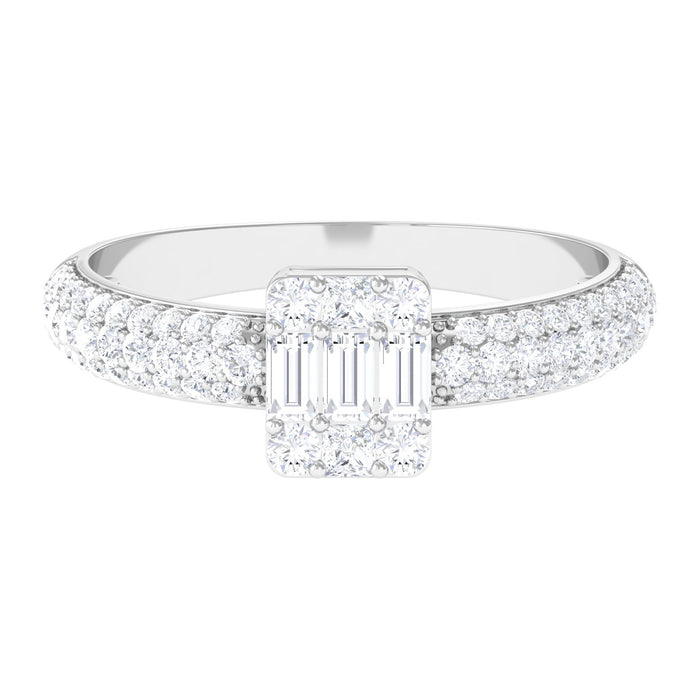 A mesmerizing Cubic Zirconia Engagement Ring adorned with dazzling Round, Baguette and Princess Cut Zircon in prong setting to makes for a lovely selection for your big day. The CZ Ring is composed of Gold Metal is scintillating jewelry for the love of your life. Leave your lover spellbound when you present her this Zircon Gold Engagement Ring.