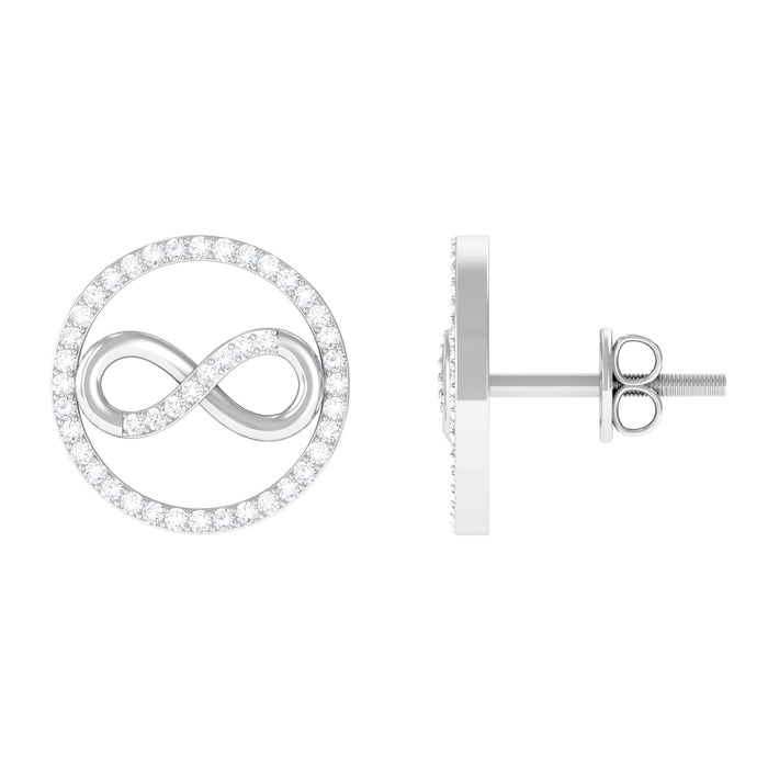 Grab this beautiful Open Circle Earrings embellished with small Round Shaped Diamonds are set in a Pave Setting. This Infinity Stud Earrings crafted in Solid Gold.