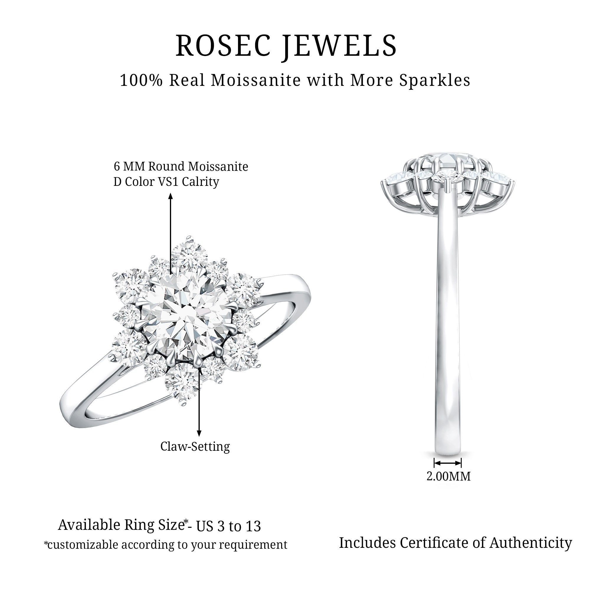 Claw Set Moissanite Halo Engagement Ring with Certificate