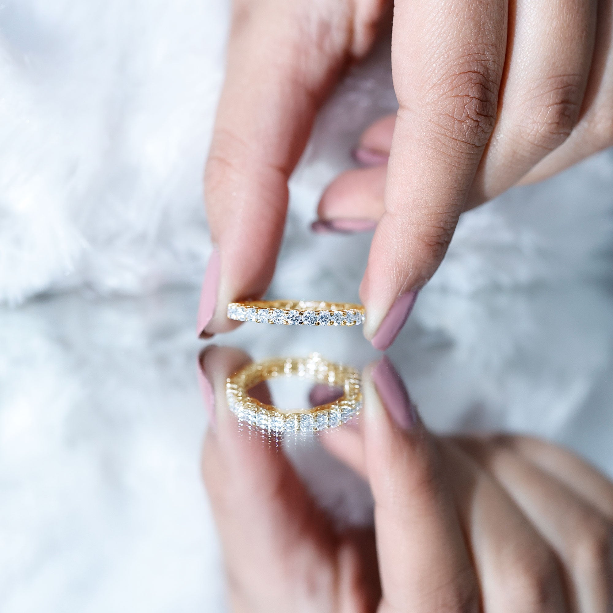 Exquisite Craftsmanship: Our eternity rings display the skillful work of talented artisans who carefully create each piece, guaranteeing a perfect blend of beauty and enduring quality.