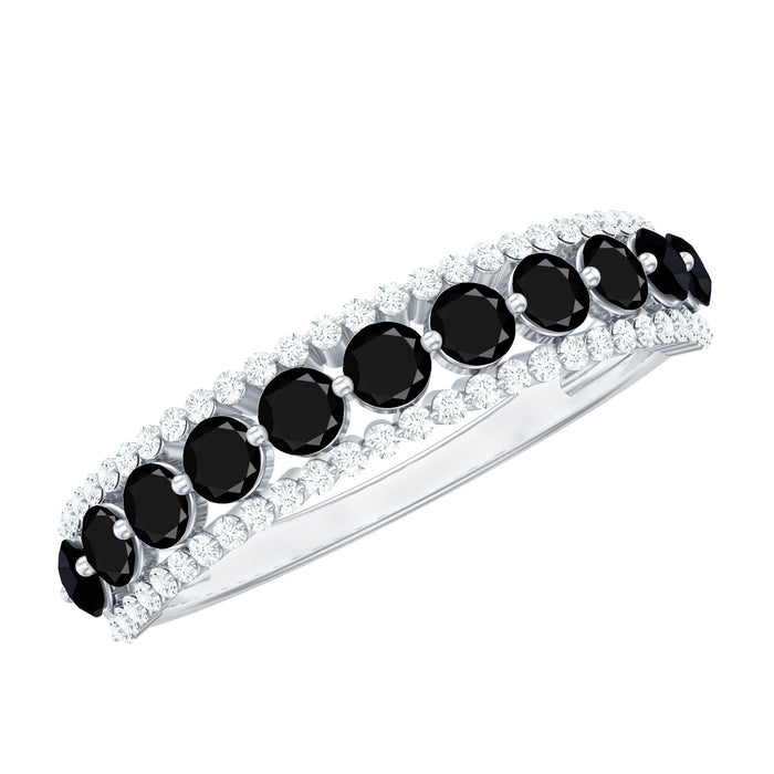 Choose something special for your beloved with this Classic Wedding Band. Round Shape Black Spinel adorns this Band Ring in Prong Setting with petite Diamond over Solid Gold build to make for a gorgeous choice for the Wedding.
