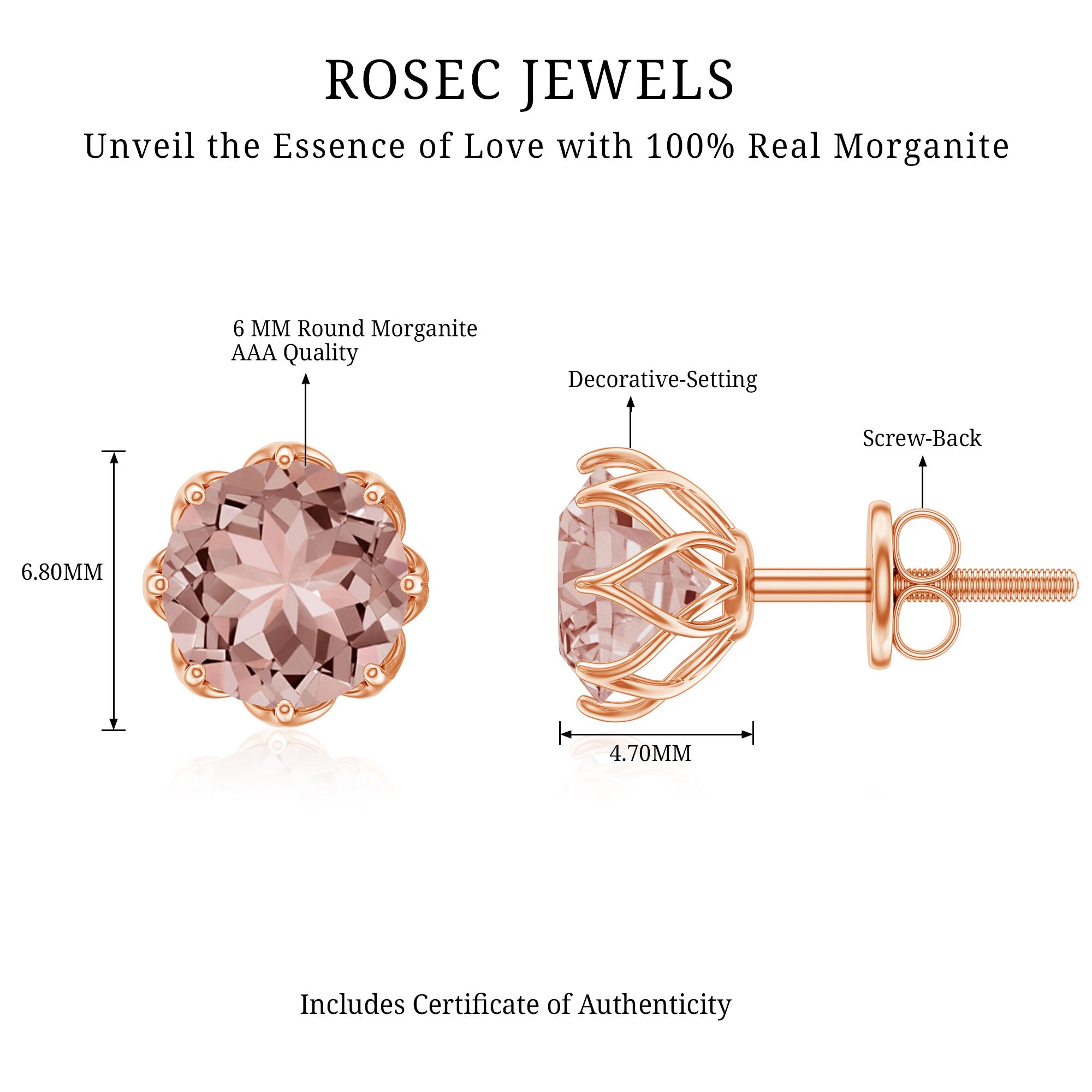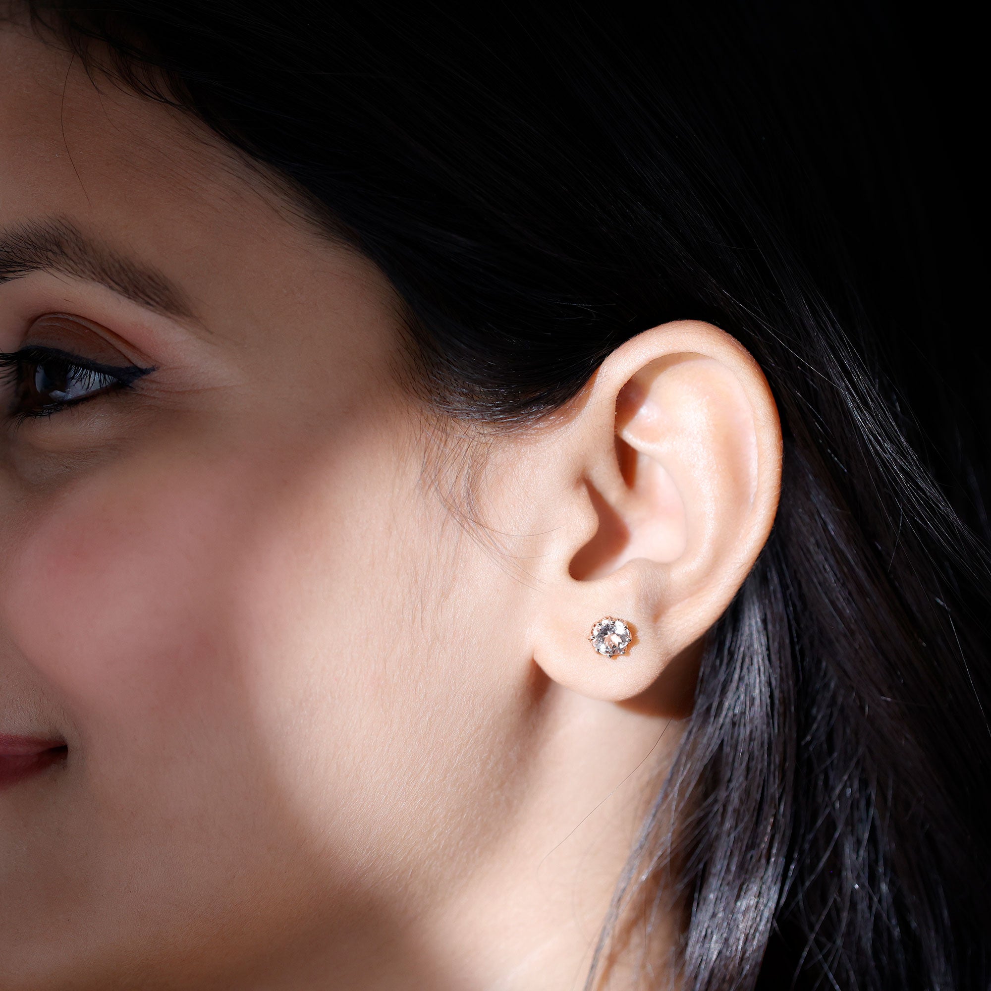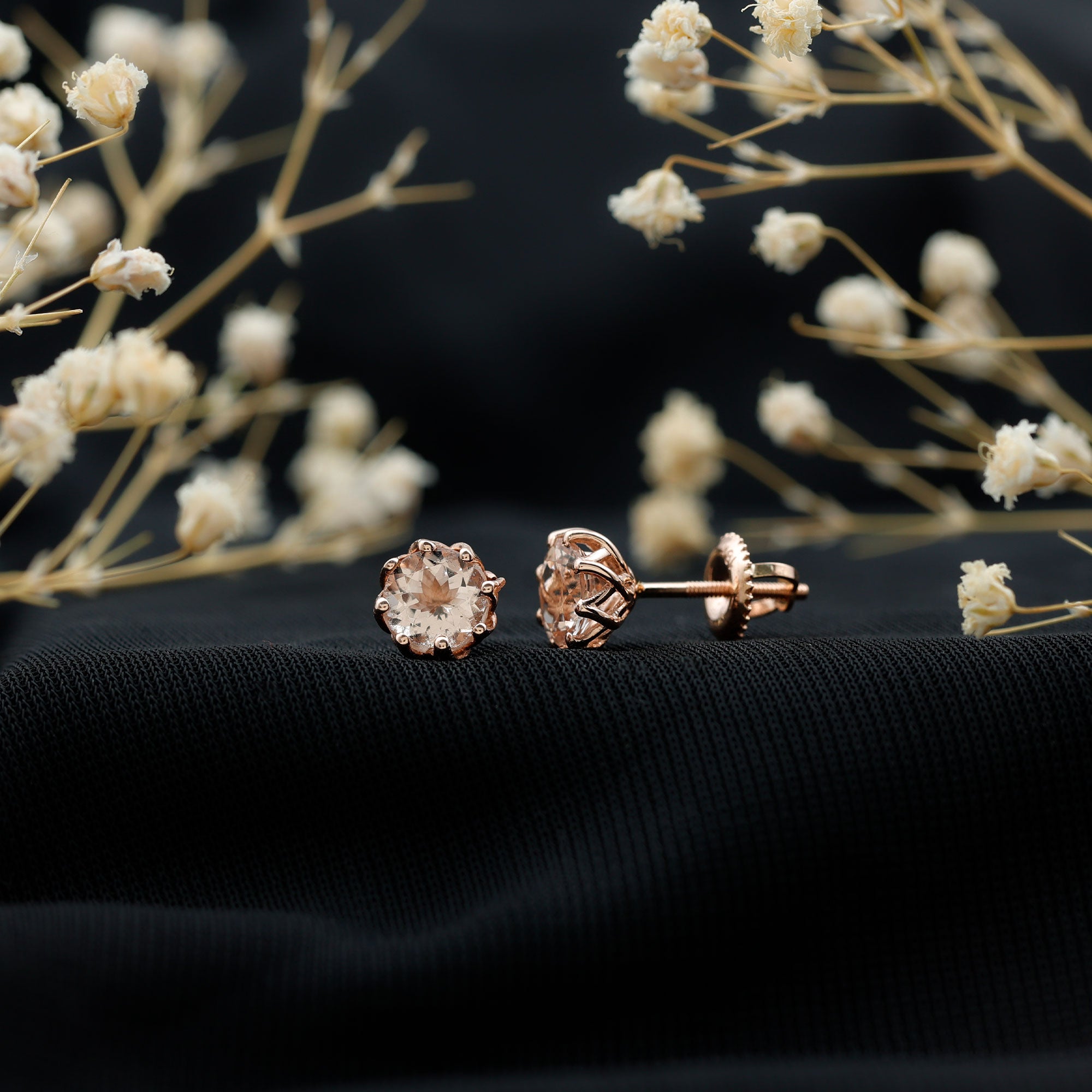 This Solitaire Floral Earring is studded with a Round Shape Natural Morganite as Solitaire in Floral Setting. This Solitaire Stud Earring is an ideal piece of Fine Jewelry for simple and subtle looks.