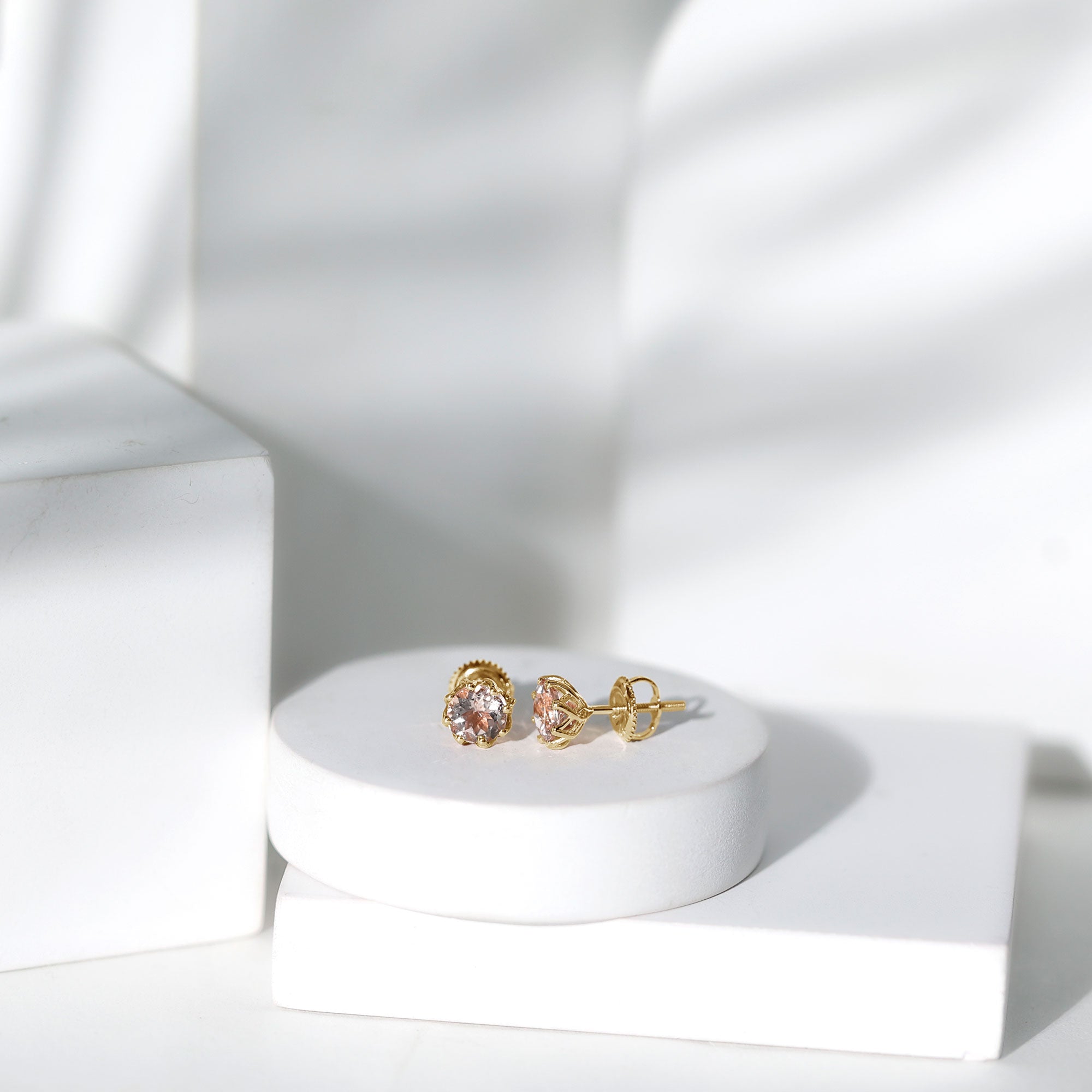 1.50 CT Real Morganite Solitaire Stud Earrings in Gold
