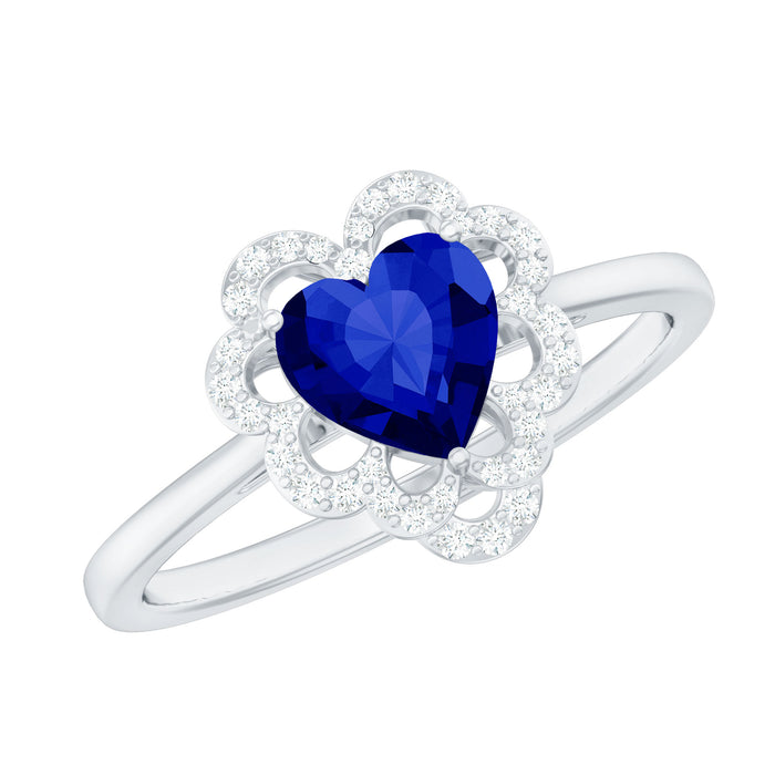 Lab Created Blue Sapphire- Brilliant Cut Lab Created Blue Sapphire Gemstone exhibits AAAA Quality and possess vibrant color. It is Certified and inclusion free, which makes it a preferable and highly desirable gem. It is a perfect alternate option of blue sapphire in budget. Exceptional Durability and vitreous Luster of this stone makes it a popular cost-friendly choice. Diamond- HI-SI Quality exhibited by Brilliant Cut Diamond give justice to its incredible value. Diamond summons beauty, attractiveness and unbreakable love. It is Certified and helps in bringing success and luxury to the wearer. Its Durability and Luster is enhanced by Lab Created Treatment, to further make it a captivating and desirable gem.
