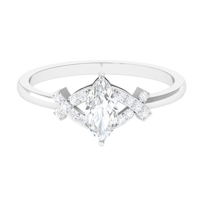 Cubic Zirconia Solitaire Ring is crafted in Gold, embellished with Marquise cut Zircon to give this ring a perfect look. The Round Cut Zircon accent is for a better and secure look. This CZ Engagement Ring has an exquisite Split Shank, make this ring perfect for your lady.