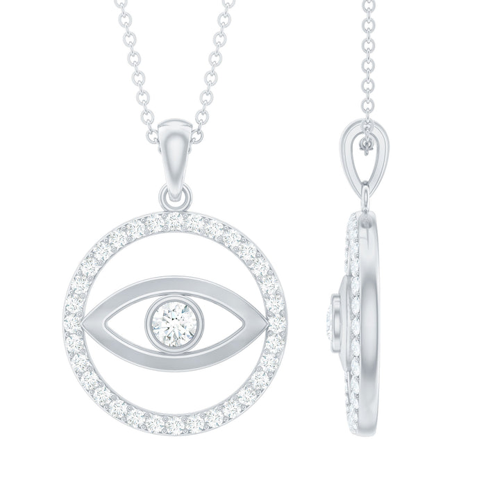 This trendy Evil Eye and Eternity Pendant is all what you need to set the trend out there. It is embedded with Round Shape Moissanite Gemstone set in the Bezel Setting at the centre and encircled by Moissanite Eternity. This pendant is crafted in solid Gold