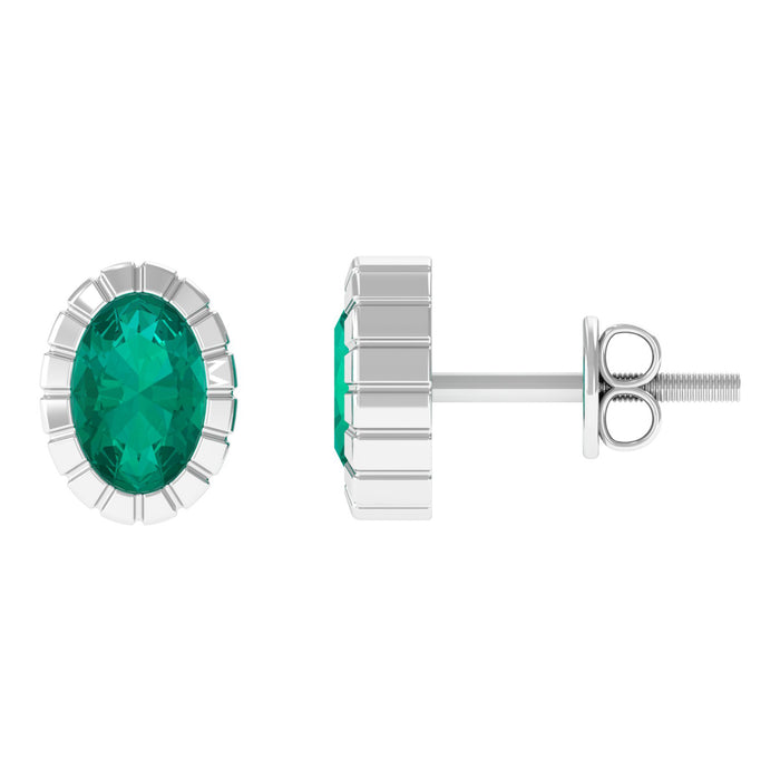 Make a bold statement with these stunning Emerald Stud Earrings that exude elegance and magnificence. Featuring Oval Cut Emerald in a Engraved Bezel Setting, these Solitaire Stud Earrings are perfect for everyday wear. Meticulously crafted with high-quality Solid Gold, these Emerald earrings make an excellent gift for your significant other.
