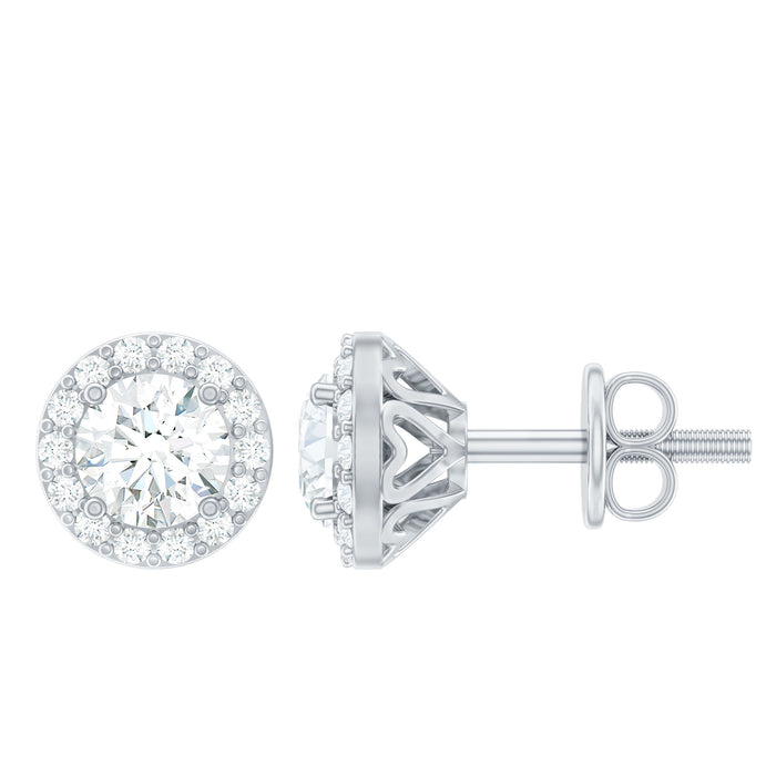 Try something simple yet elegant to enhance your appearance, such as these Classic Halo Stud Earrings embellished with Round Cut Zircon in Prong Setting. These Zircon Classic Stud Earrings are crafted with Solid Gold for a stunning look.