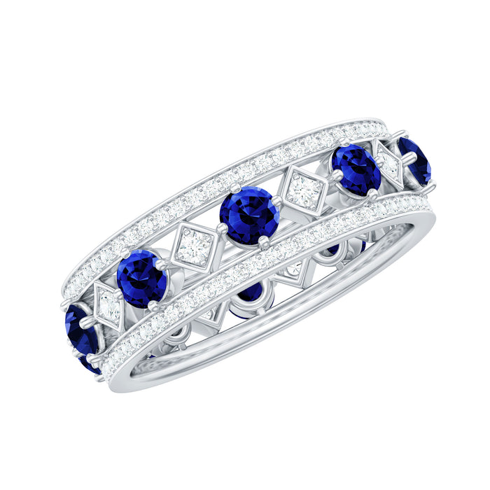 Lab Created Blue Sapphire and Diamond Full Eternity Band Ring
