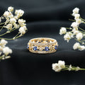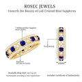Are you in search of a ring that combines sleekness with a vibrant personality? Allow us to introduce your new favorite: the Lab Created Blue Sapphire Ring, which embodies modern elegance with a hint of luxury. This Full Eternity Ring is distinguished by its striking design, showcasing round shape lab created blue sapphire stones interspersed with dazzling round cut diamonds, all set in an alternating pattern. Whether you seek a distinctive wedding band or a wide band ring to complement your existing collection, this piece is an ideal choice. It boasts a modern aesthetic while offering enough sparkle and boldness to capture attention. Furthermore, the combination of Created Blue Sapphire and diamonds creates a stylish contrast that is both sophisticated and edgy. The Lab grown sapphire stones impart a rich essence, while the diamonds contribute the perfect touch of brilliance. Together, they form a ring that is both understated and elegant, suitable for daily wear or special events. This Created Sapphire and Diamond Ring serves as a testament to your style and self-assurance. Whether you are presenting it as a gift to a loved one or indulging yourself, this Vintage Eternity Band is designed to be worn, cherished, and admired. So why choose the ordinary when you can showcase a band that is both fashionable and entirely unique.