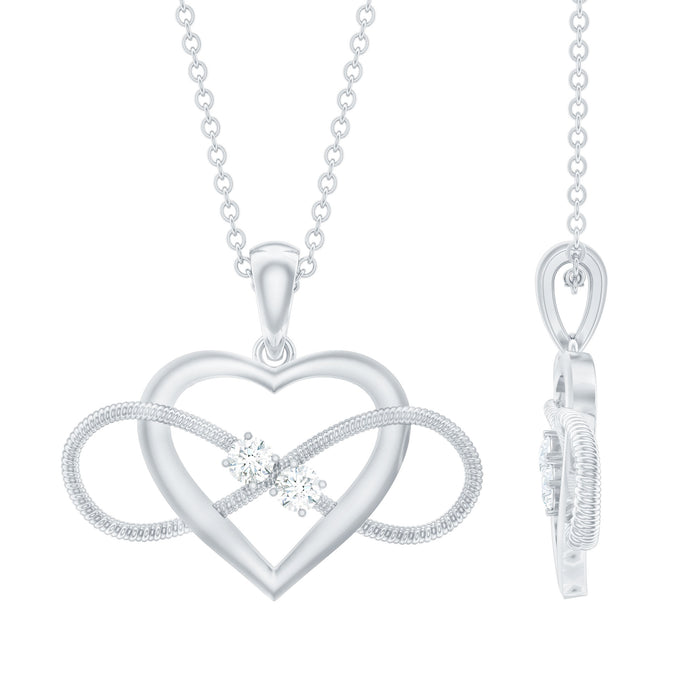 Profess your love with this Heart Pendant featuring 2 Round Cut Diamonds set in Prong Setting in a Heart and Infinity Loop. This Pendant is composed of 14K Solid Gold