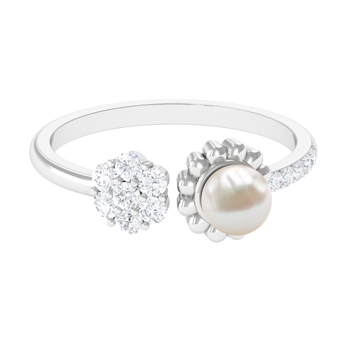An absolute charm of this Cuff Ring is mesmerizing, it is featuring Freshwater Pearl and Diamond to make for an enchanting combination. Freshwater Pearl exhibits AAA Quality and possess subtle color. Semi Precious June Birthstone summons faith and innocence. It is Natural and Certified, helps in enhancing personal integrity and grow sincerity of the wearer. The extremely durable nature and luster makes it a captivating and desirable gem. Diamond- HI-SI Quality exhibited by Brilliant Cut Diamond give justice to its incredible value. Diamond summons beauty, attractiveness and unbreakable love. It is Certified and helps in bringing success and luxury to the wearer. Its Durability and Luster is enhanced by Lab Created Treatment, to further make it a captivating and desirable gem.