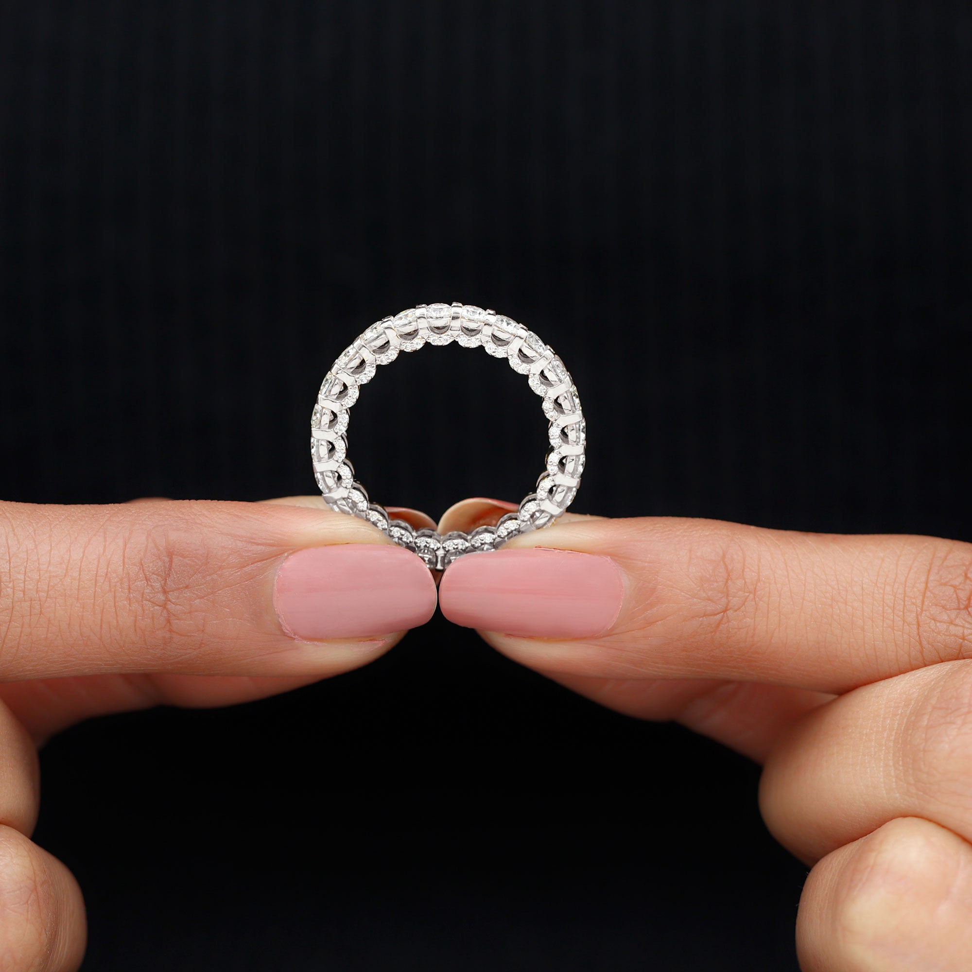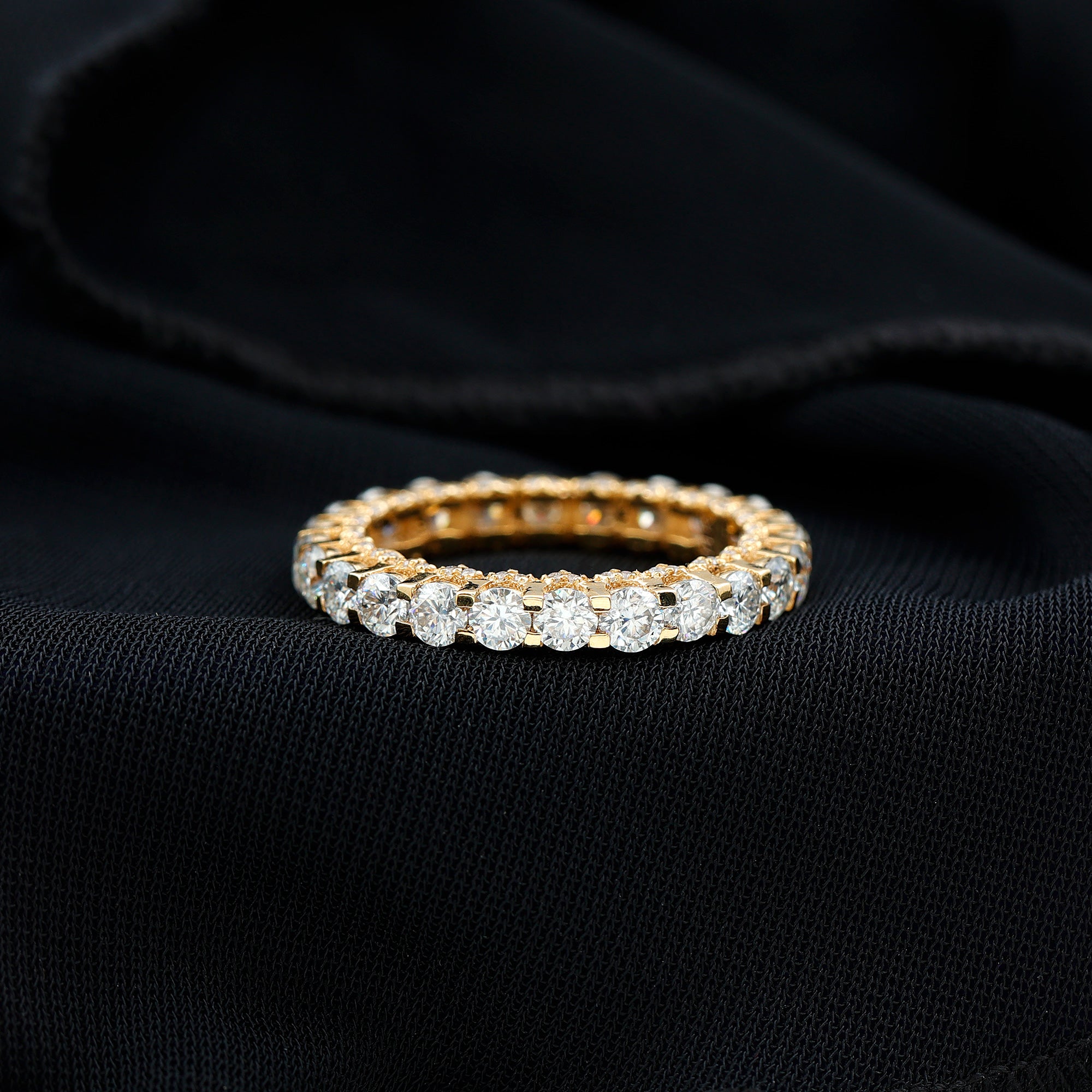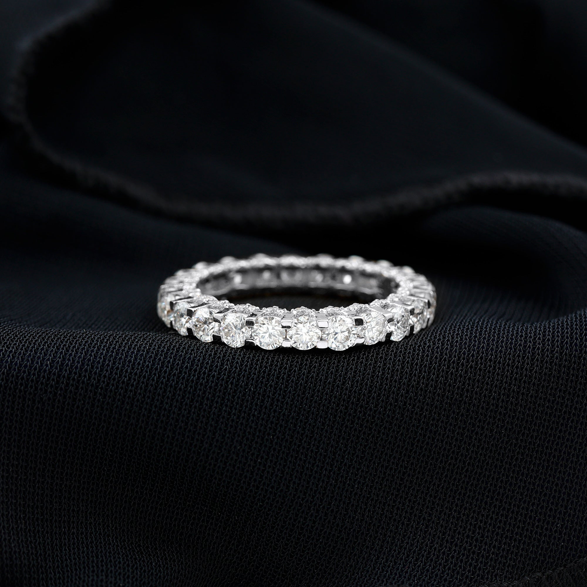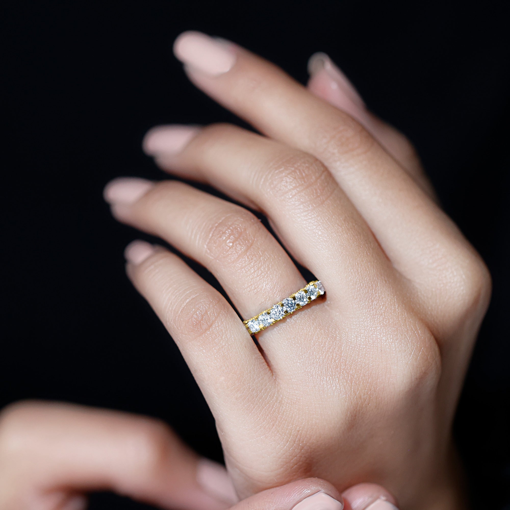 Moissanite is the best alternative to diamond for all the great reasons. The brilliant and fierce moissanite stackable wedding bands can withstand the test of time. Couple are considering moissanite wedding bands leaving behind the diamond ones as moissanite is pretty affordable. Being an Eco-friendly and cruelty-free stone gives moissanite a plus point for sustainability loving brides.