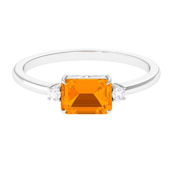 Elevate your style with this exquisite Solitaire Engagement Ring, featuring an alluring Octagon Cut Fire Opal that is set in an East West pattern, further enhancing its unique and captivating appeal. The stunning Fire Opal is beautifully showcased in a claw setting, accentuated by sparkling Round Diamond side stones, adding to its sophisticated and refined allure. Give your special someone a gift that they will cherish forever, and symbolize your commitment to a lifelong promise of love and devotion with this exceptional and enchanting Solitaire Engagement Ring.