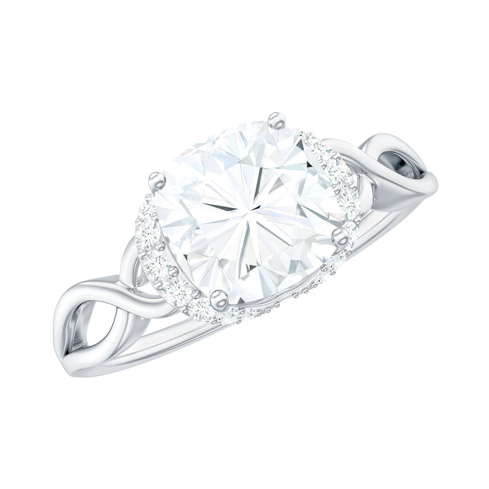 Captivate her with this exquisite Solitaire Moissanite Engagement Ring, as it represents the perfect selection for her. This Infinity Ring is made from premium quality metal and showcases a 8 MM cushion cut moissanite prominently positioned at the center, securely fastened in a 4 prong setting. The shoulders of the Solitaire Engagement Ring are adorned with delicate moissanites, complemented by an elegantly twisted Infinity-inspired band that signifies the unbreakable connection between two hearts. Serving as a timeless emblem of commitment, this Moissanite Solitaire Ring possesses a classic aesthetic that draws attention instantly. With its deep significance, this Unique Engagement Ring reflects your special bond, narrating the tale of your love. Crafted with D-VS1 Quality Moissanite, it exudes remarkable clarity and brilliance, making it an ideal representation of eternal love. Our talented artisans have painstakingly created this Infinity Engagement Ring, resulting in a true masterpiece that she will cherish for its breathtaking sparkle. This Moissanite Ring for Women is perfect for all your important celebrations, whether it be an Anniversary, Wedding, Engagement, Valentines Day, Birthday, New Year, or Christmas.