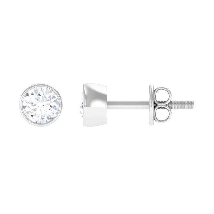 Elevate your style with bezel set Round Shape solitaire Moissanite stud earrings. Timeless elegance meets modern sophistication.