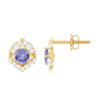 These round tanzanite stud earrings are a true visual delight, with their bluish-purple hue and irresistible radiance. Expertly designed in solid gold, the tanzanite are bezel set and add to the overall beauty and elegance of these earrings. The simplicity of the design allows the stunning color and sparkle of the tanzanite to take center stage, making these earrings a perfect choice for any occasion. Whether you are looking for a gift for a loved one or a special treat for yourself, these earrings are sure to delight. The timeless beauty and exceptional quality of these earrings make them a treasured addition to any jewelry collection.