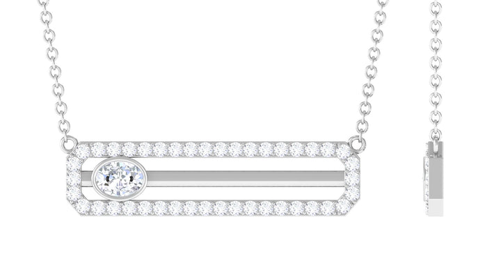 Stay ahead of the fashion curve with this stylish and sassy bar-shape moissanite pendant necklace. Uniquely designed and beautifully embellished with sparkling moissanite, this solid gold pendant is the perfect accessory for when you want to get noticed for your impeccable sense of style. The sleek and modern design is sure to turn heads wherever you go, making you the envy of everyone in the room. Whether youre dressing up for a special event or simply want to add a touch of sparkle to your everyday look, this bar-shape moissanite pendant necklace is the perfect choice. So why wait? Embrace your love for fashion and stand out from the crowd with this stunning piece of jewelry today!