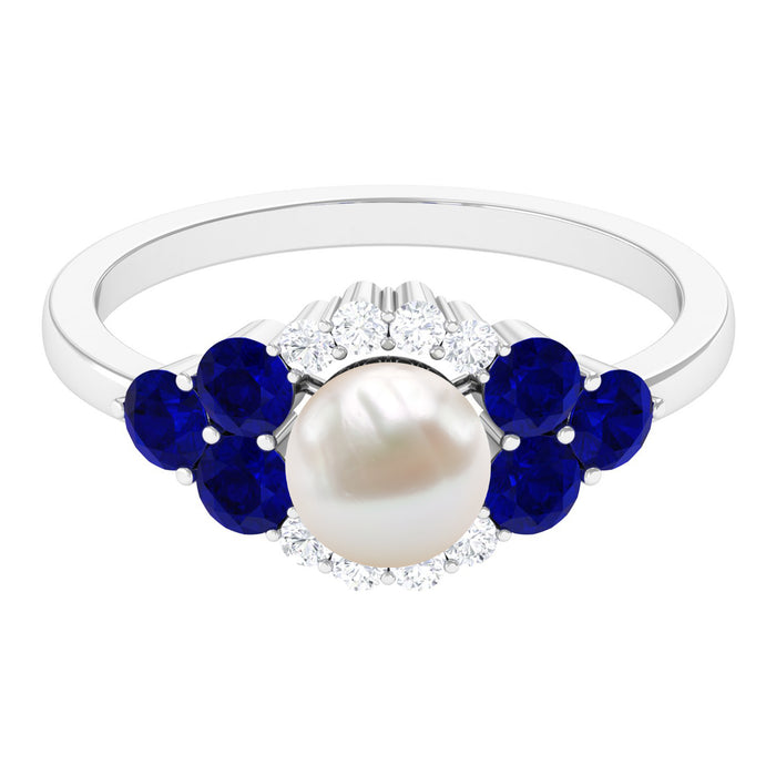 Elevate your style with this exquisite Cocktail Ring that showcases a stunning Freshwater Pearl at its center, accentuated by the brilliance of Blue Sapphire and Moissanite. Made with premium Solid Gold, this ring exudes sophistication and elegance that will enhance your overall appearance. Its intricately designed band adds a touch of charm, making it an exceptional piece of handcrafted jewelry. With Rosec Jewels, you can indulge in the luxury of wearing meticulously crafted accessories that perfectly complement your unique style. Flaunt your beauty with confidence by adorning yourself with this captivating Freshwater Pearl Cocktail Ring that will surely make heads turn.
