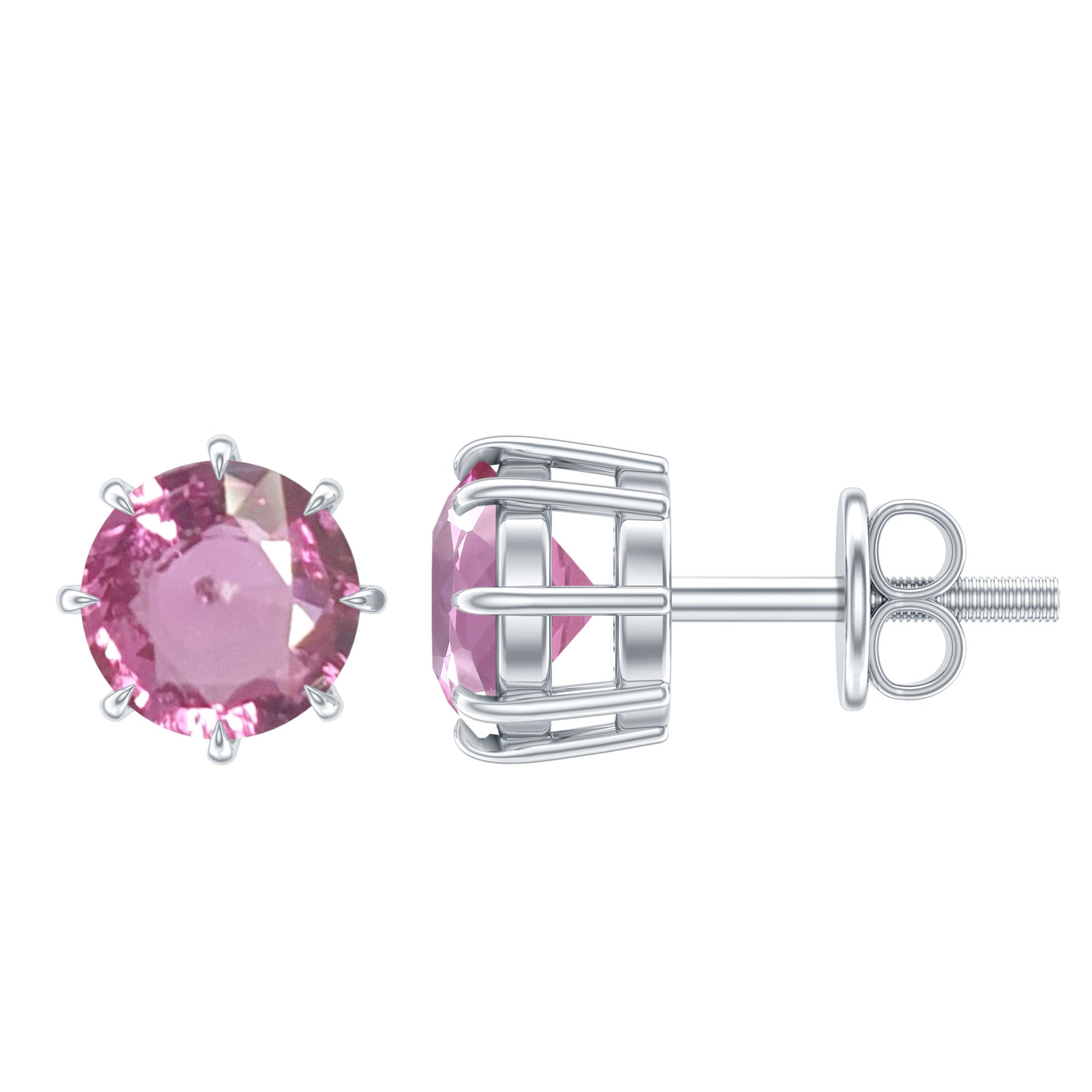 4.5 MM Natural Pink Sapphire Solitaire Stud Earrings in 8 Claw Prong Setting